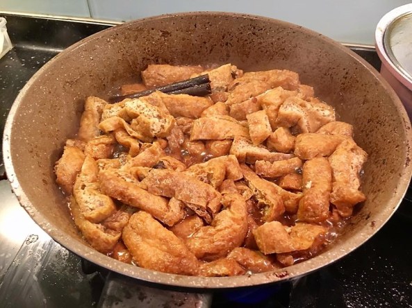 tofu was fried earlier, set aside and added to the very tasty gravy with egg before serving. then garnished with coriander.