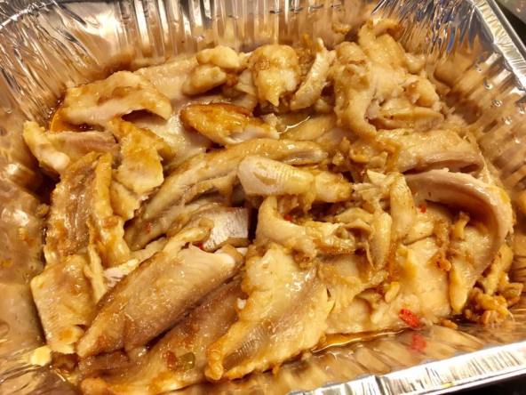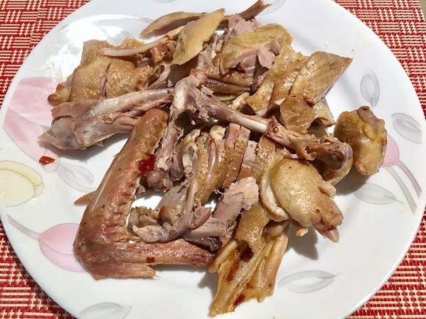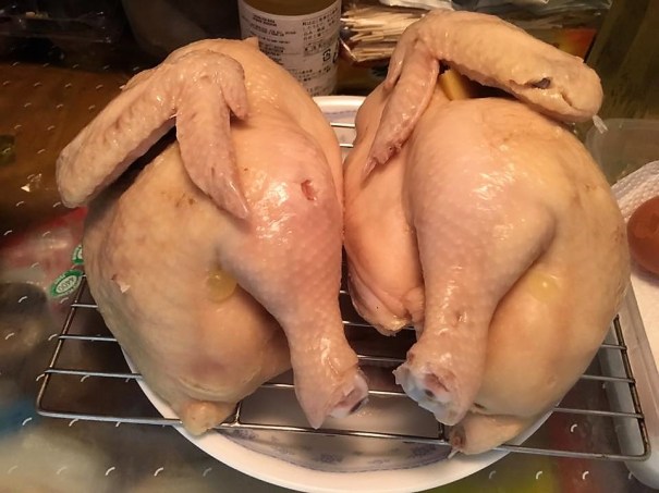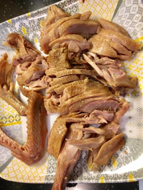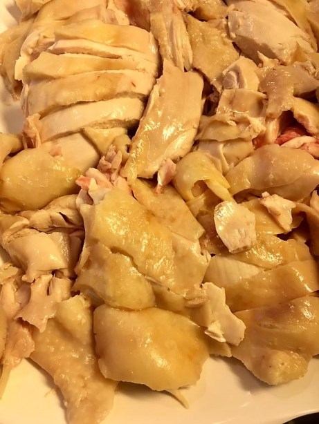 i cooked the chicken just right – 12mins simmering, 25mins off fire poached, then ice bucket, and placed in fridge.