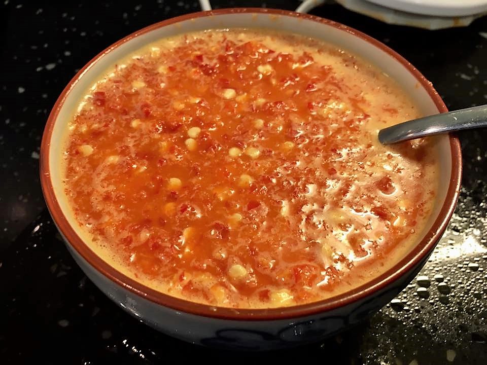 i made the chicken rice chili – 6 red chilli, 1 chili padi, 5 tbsp chopped garlic, 3cm chopped ginger, 1tbsp flat sugar, 1/2 cup intense chicken stock 1/2 tsp salt..
