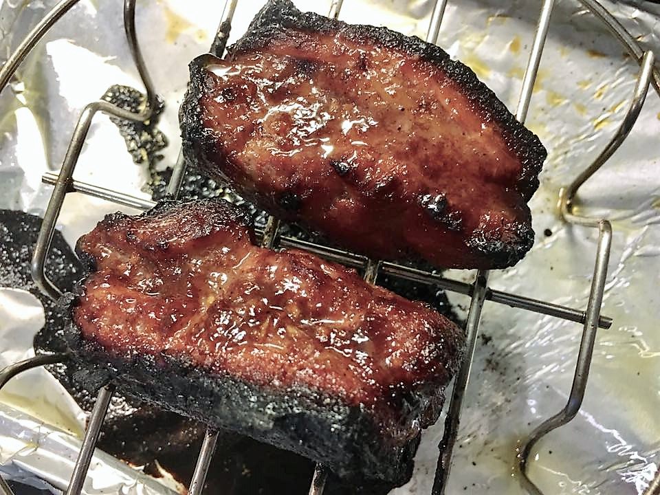 result was quite wonderful – texture, taste (marinade & well infused) & fat charring all excellent…glistening…