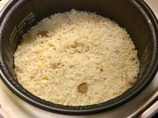 rice recipe= fried chicken fat, 2cm ginger, 3 shallots, 1tbsp chopped garlic, & 3 cups rice till fragrant, then add 3 cups (rice cups) intense chicken stock to the rice cooker mark. 🙂