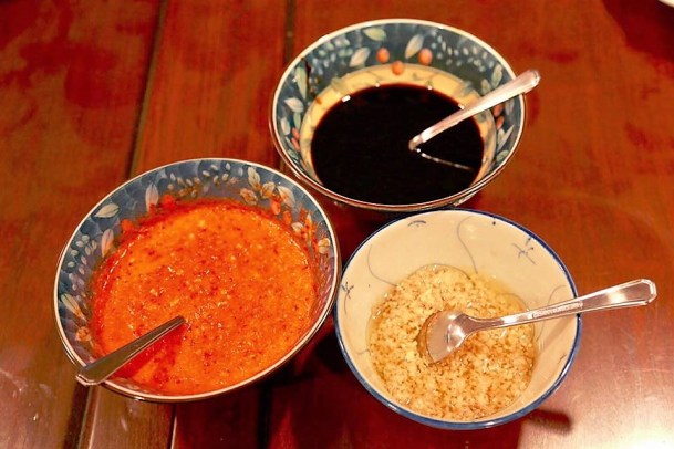 simple chili recipe = 6 red chili, 2 chili padi, 1tbsp flat sugar (or if lesser then 2tsp), 5 tsp garlic, 2cm ginger, 1/2cup intense chicken stock ,1/3tsp salt, and blend.