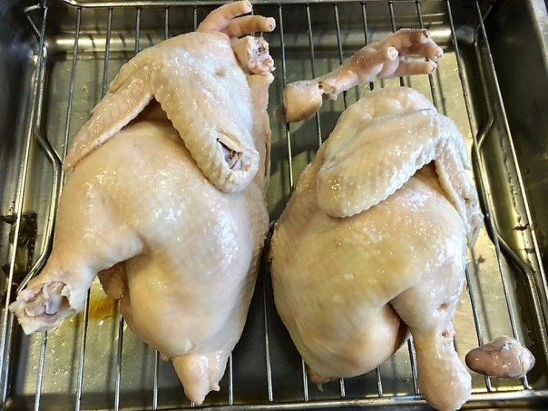 then cooled & in the fridge for 2 days to dry the skin, then 1hr 10mins at 200degC (i am going to do 1hr at 250degC next time).