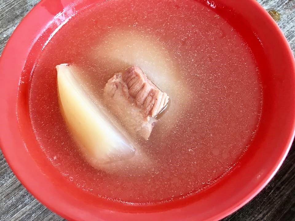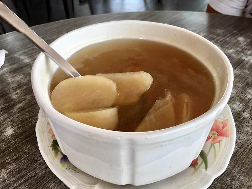 WT who bought lunch ordered the carrot soup. they had pork ribs & also dry cuttlefish for stock. a clear & quite tasty soup.