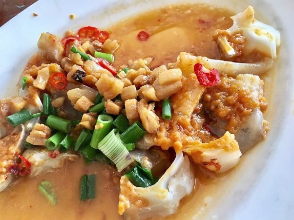 this was so good. the sauce was taujeon and a bit tangy, i suspect lime. it was so nice especially with the gelatinous sharks cartilage. of course there was a lot of larpok, crispy lard!