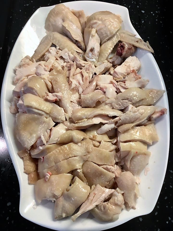 poached chicken 白斩鸡 was smooth 滑, tender, moist sweet, & so lovely to see & behold.