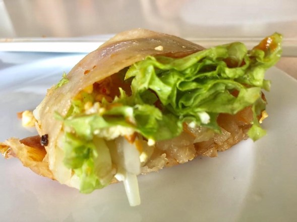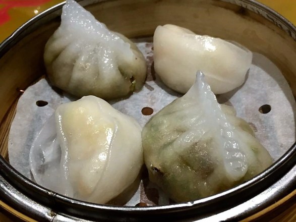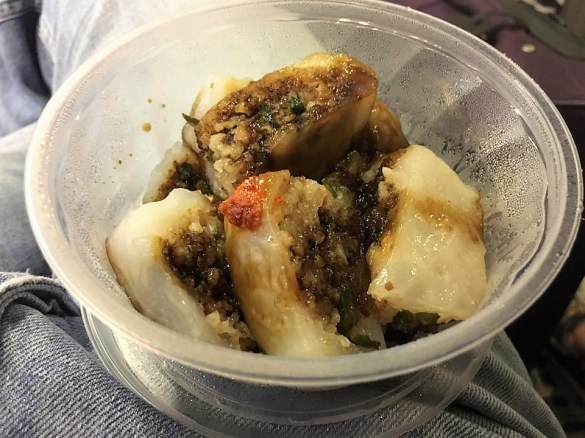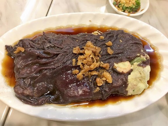 it was a minced seafood roll, with a layer of skin, not sure what it was made of, some starch from some crops?