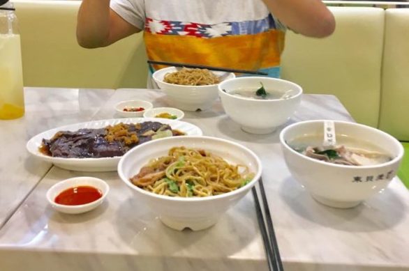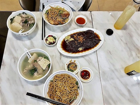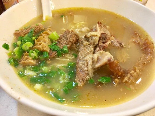 one difference from singapore pig organ soup is it is served with a tossed noodles with braised pork.