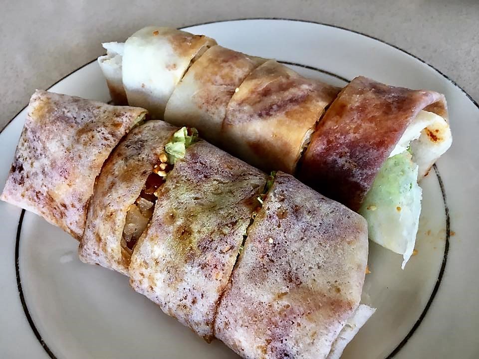 it was a minced seafood roll, with a layer of skin, not sure what it was made of, some starch from some crops?