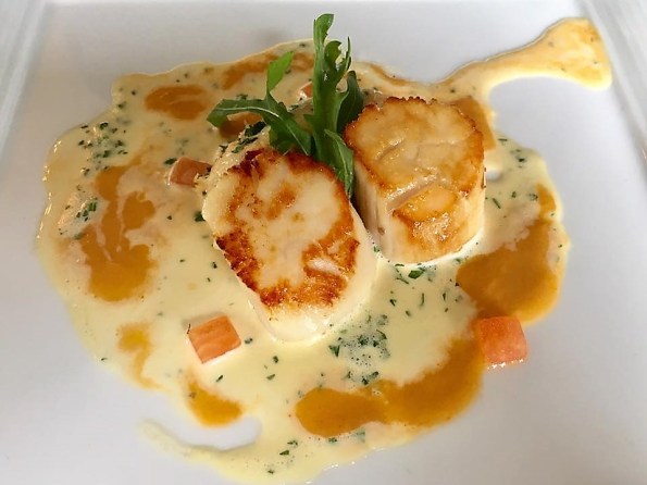 nicely seared, tender, plump, sweet scallops and wonderful sauce…