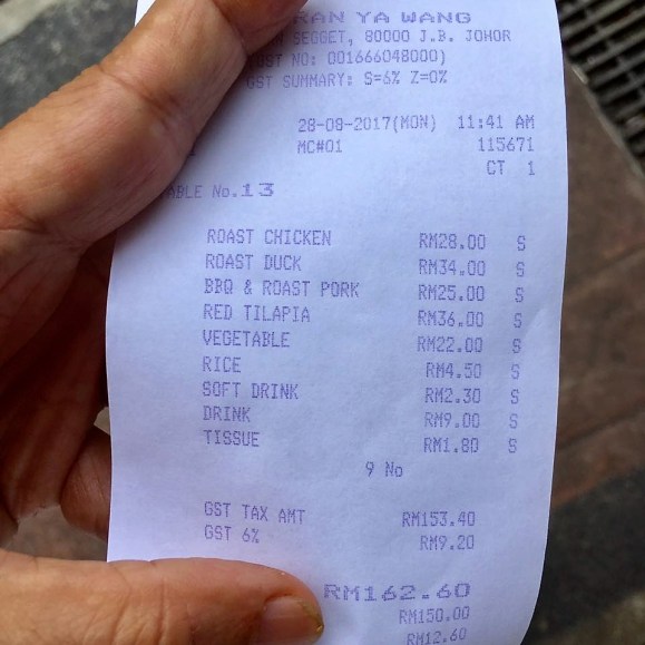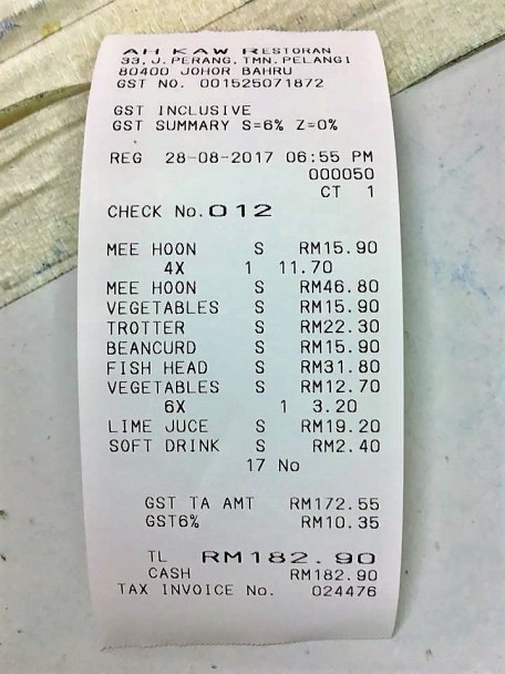 and a very inexpensive dinner plus drinks plus 4xpackets takeaway 三楼米粉 medium=just RM182 for 6pax..
