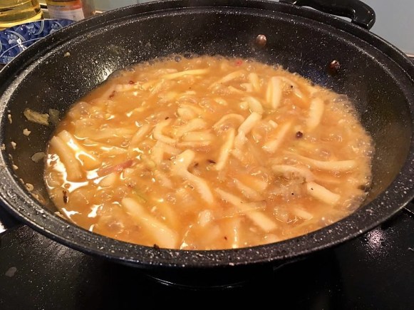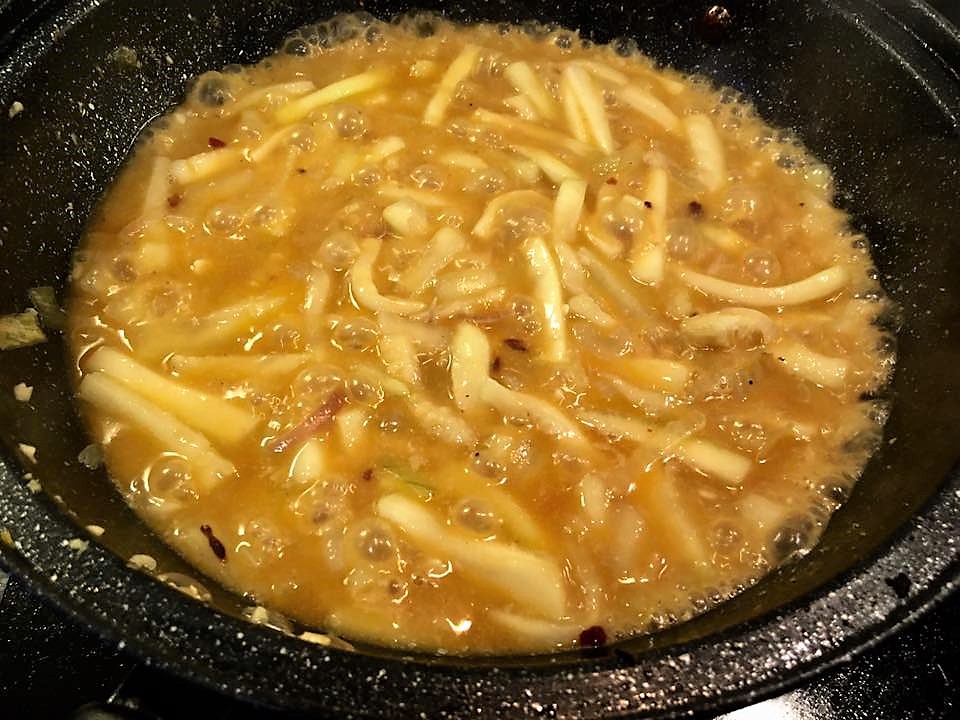then added the sauce from the chicken, covered the wokpan and braised & reduced.