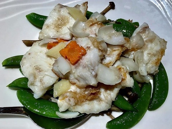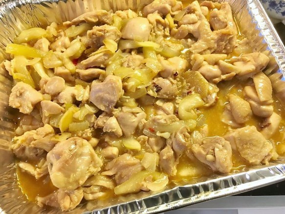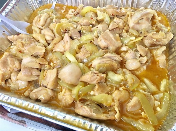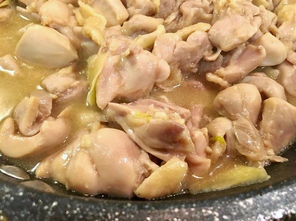 the end result – a very tasty dish of wine chicken thighs with bottle gourd & onions.
