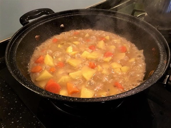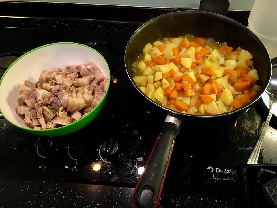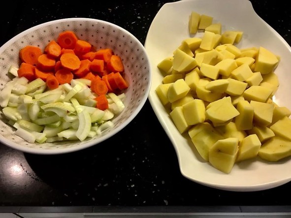 i prepared the carrots, onions & potatoes – 2 large carrots, 2 large onions, 6 medium potatoes.