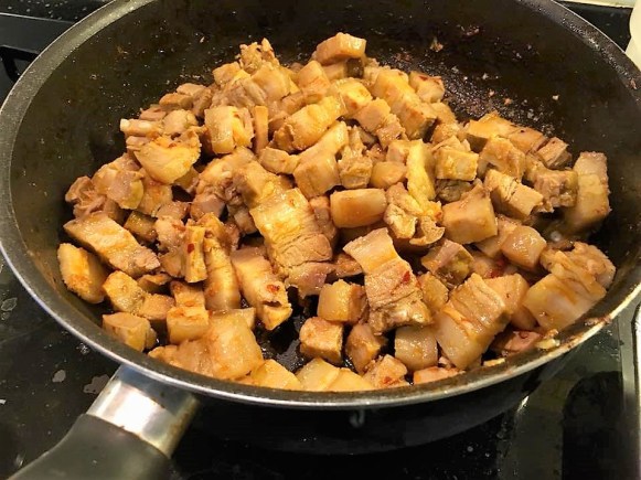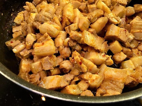 i fried the chicken pieces in a hot pan with sliced ginger, cut chilli padi, and chopped garlic. then added the marinade, covered & braised lightly 焖..