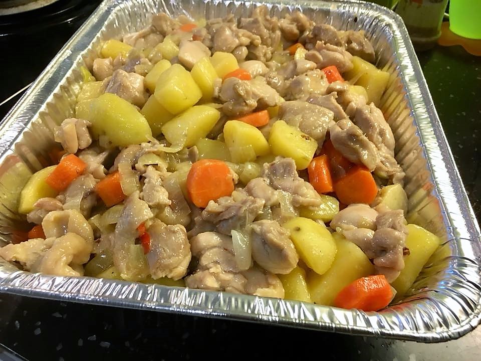 & voila – a tasty dish of wine chicken with potatoes & carrots for teban gardens! ^^