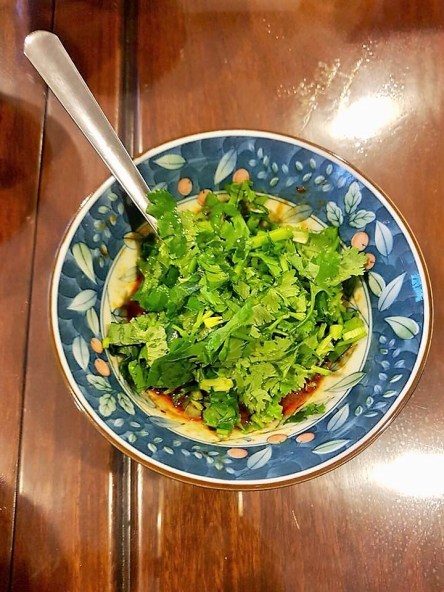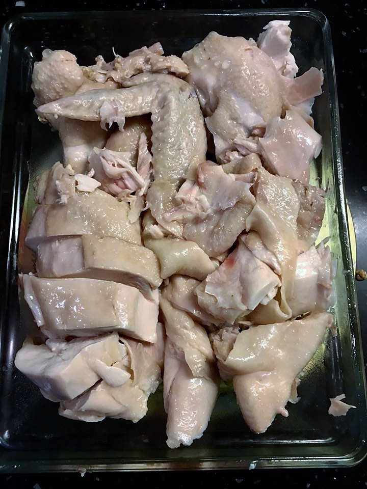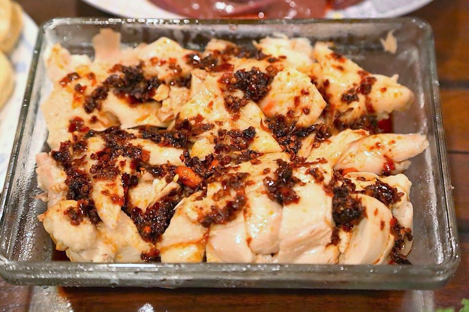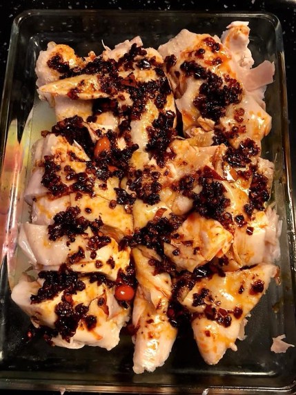 & i made saliva chicken 口水鸡. first poached 1/2 chicken then added the mala sauce with fish sauce mix.