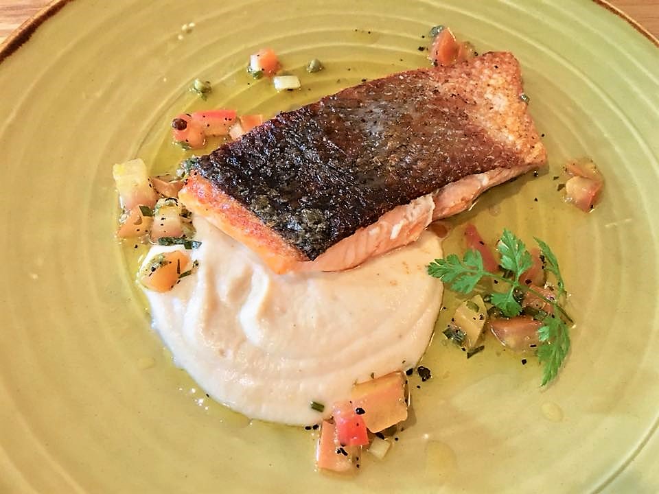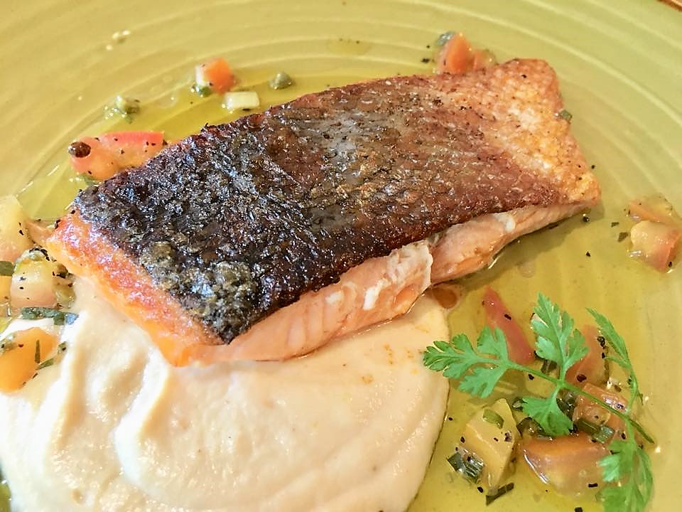 i did not try the salmon. but it looked perfectly charred, and with good mash & sides. 🙂