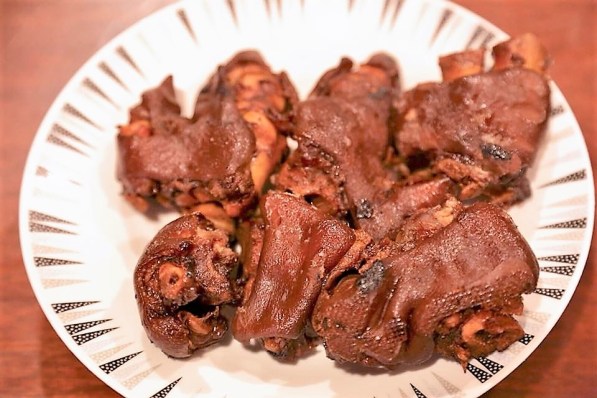 i made braised hock 元蹄 (upper part) and trotters (lower part).