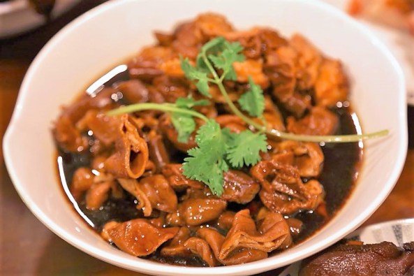 it was very tasty. just the right gelatinous skin texture & the lean meat was tender, moist and not old. that is important as if over-braised the lean parts become old & not tender or moist.