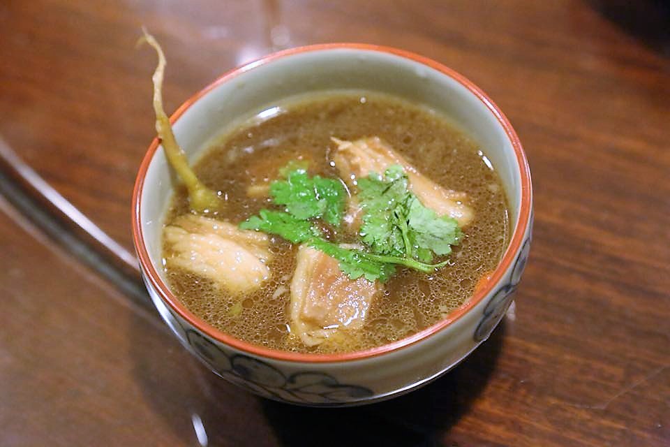 this one though, he discovered no smell got flavour and quite perfect tenderness (6hrs in 95degC oven). the soup, which was just tai seng kong bkt soup sacket base added large red dates, lots of thin julienned ginger, whole bulb of garlic cloves & coriander, with wolfberries at the very last, was very smooth, tasty & flavourful.