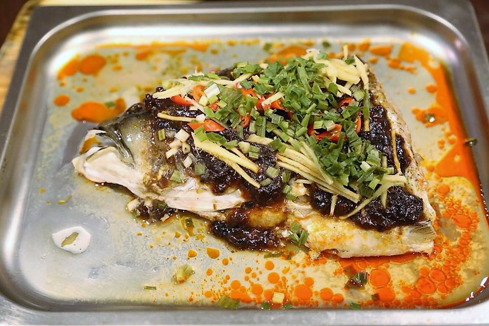 first was a spicy black bean sauce steamed song fish head 松鱼头.