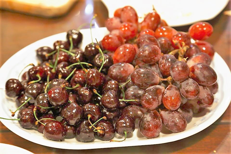 HK & other friends brought veuve cliquot champagne, red wine & grapes