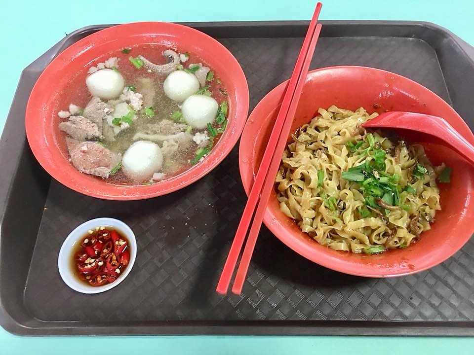 we moved on to lor 8 food centre..took $4 bakchormee from man yuan & $2.50 wanton noodles + S$1 水饺汤 from hougang meng kee