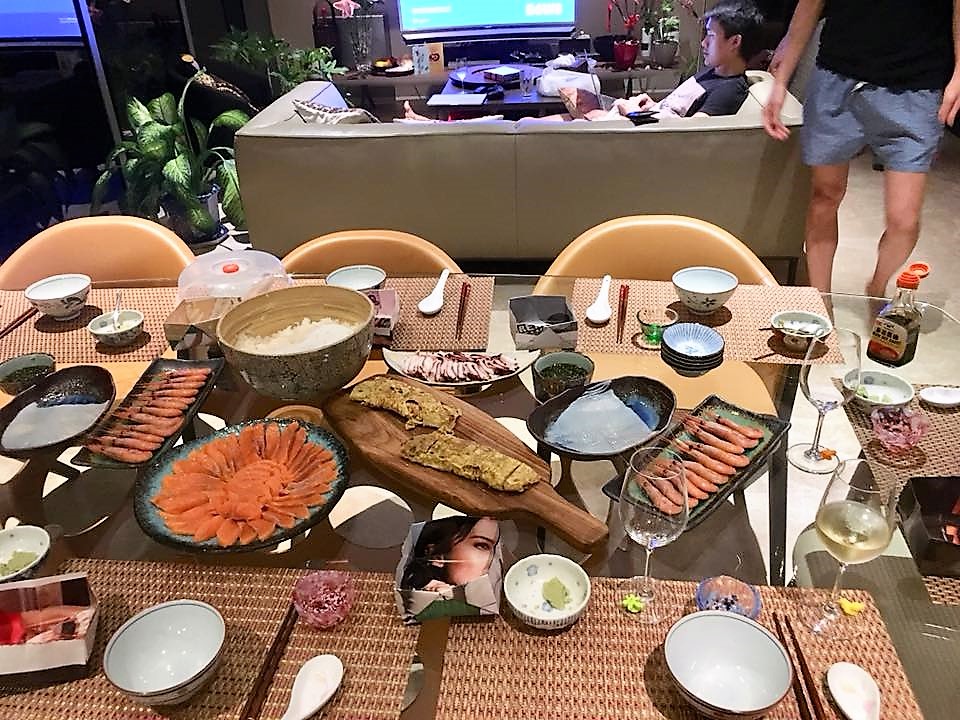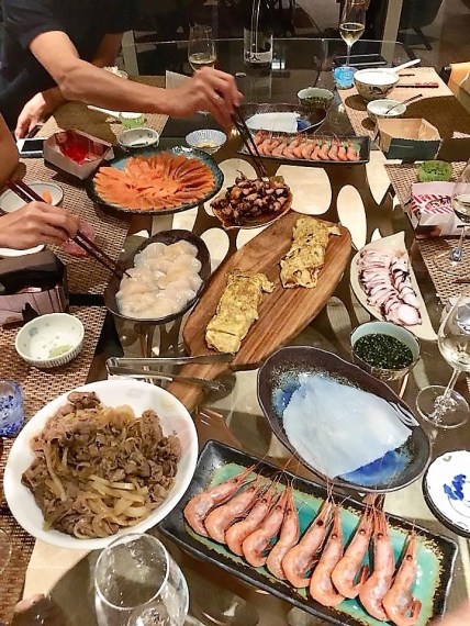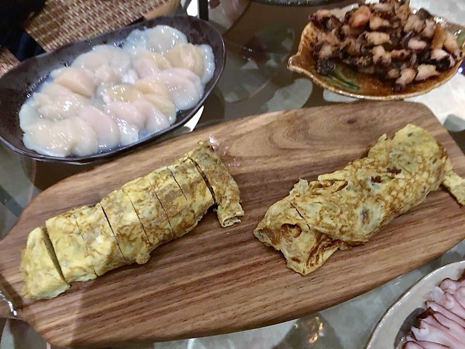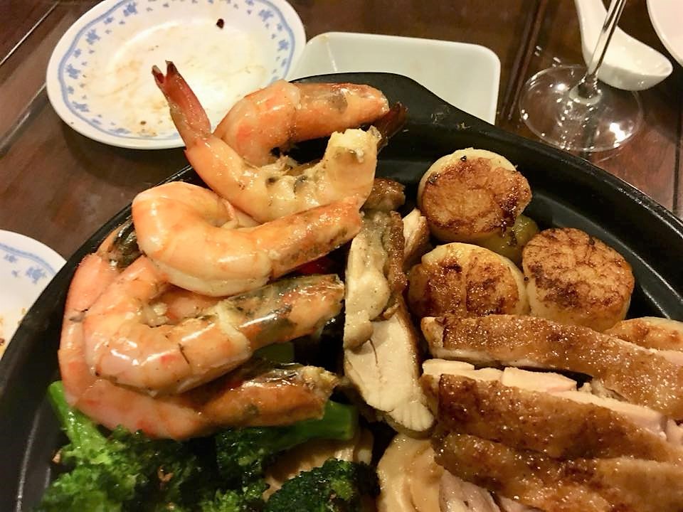 i just topped up the claypot with the other ingredients – pan-seared hokkaido scallops, grilled chicken thighs, steamed prawns, poached brocoli..