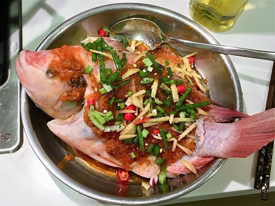i made this previously both 鸦片鱼头 and salmon fish head, and my children, son, youngest daughter, and also sil all loved the dish…& walloped the very tasty infused scallions…
