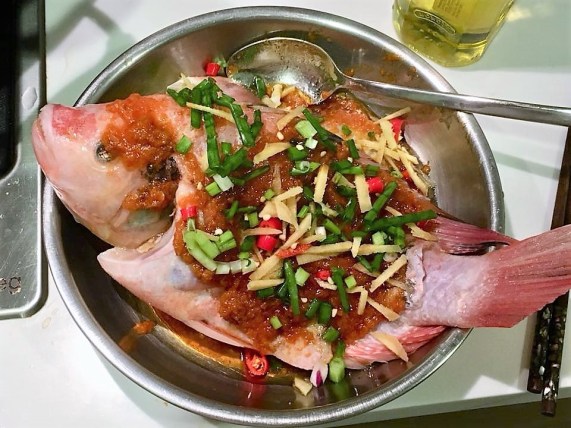 i forgot HC does not take scallions, but he enjoyed the fish all the same, w/o the scallions…