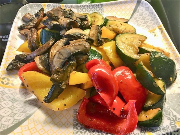 grilled vege-red pepper,yellow pepper,zucchini, portobello mushrroms
