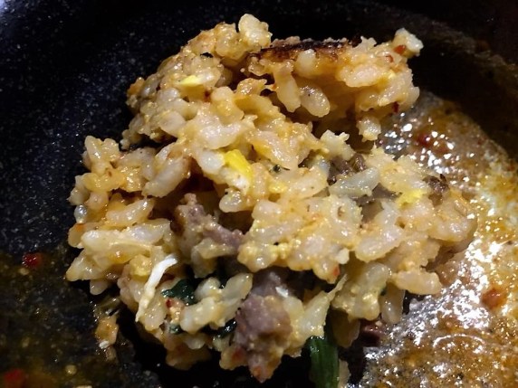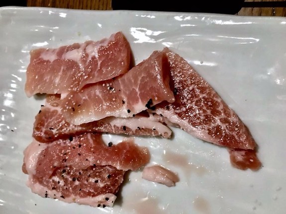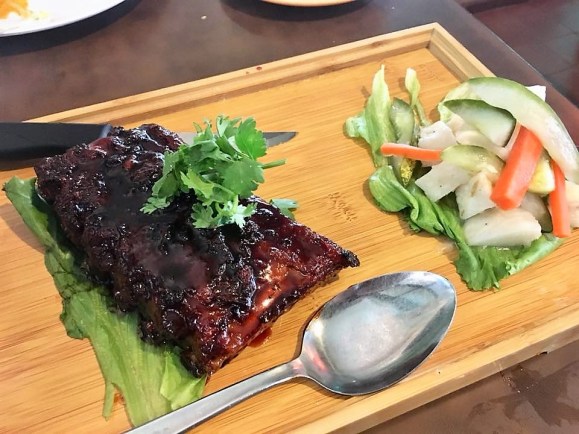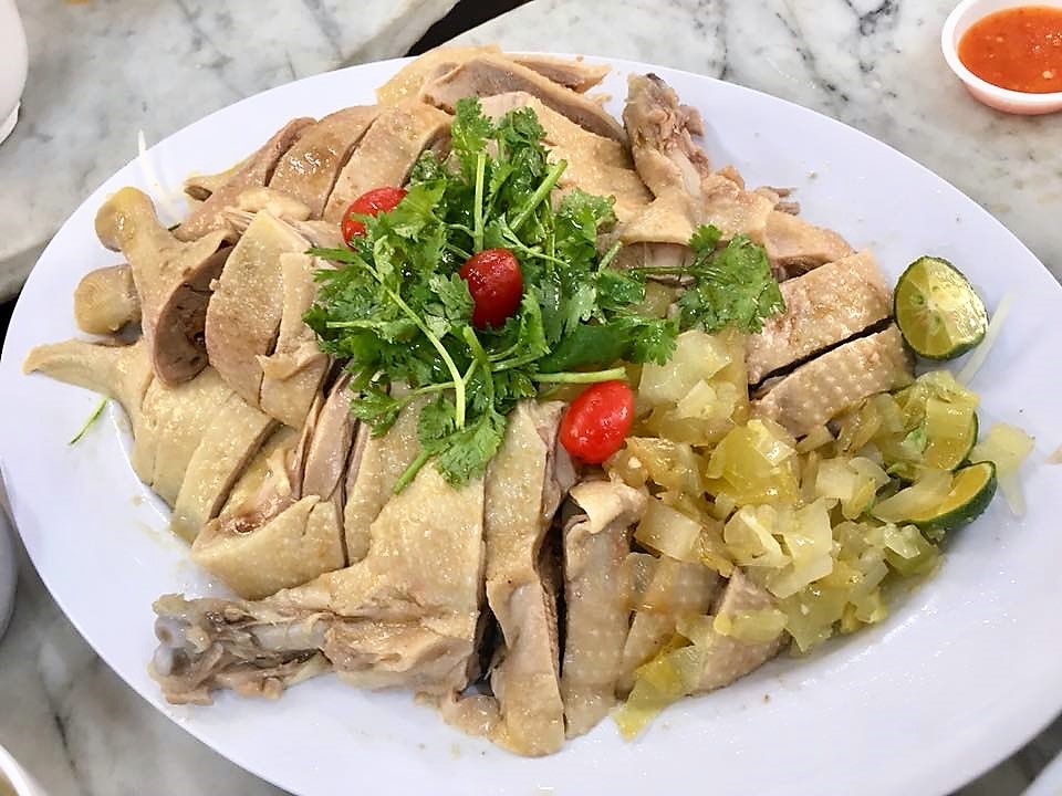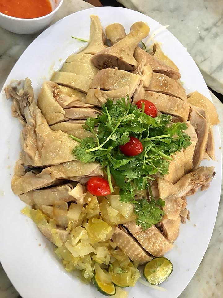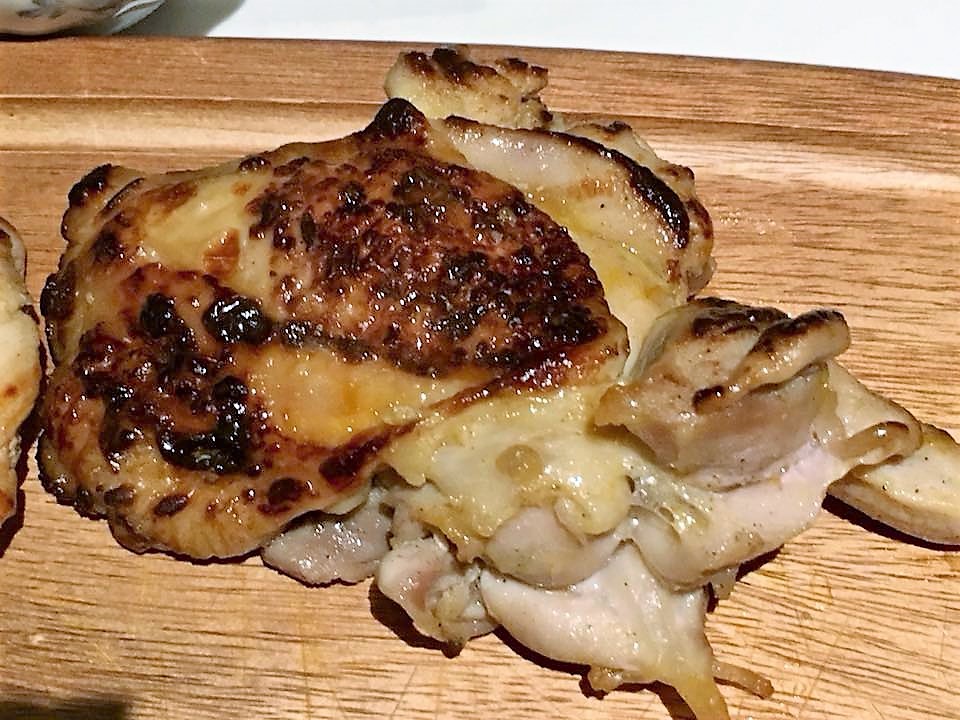 i used 1/2 deboned chicken, seasoned with fish sauce & pepper & pan-grilled.