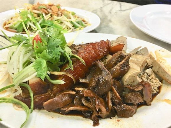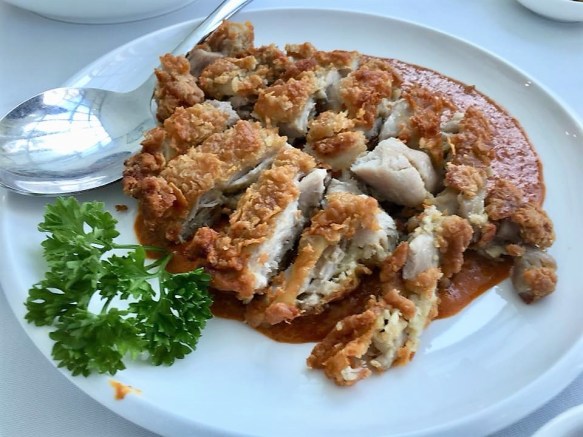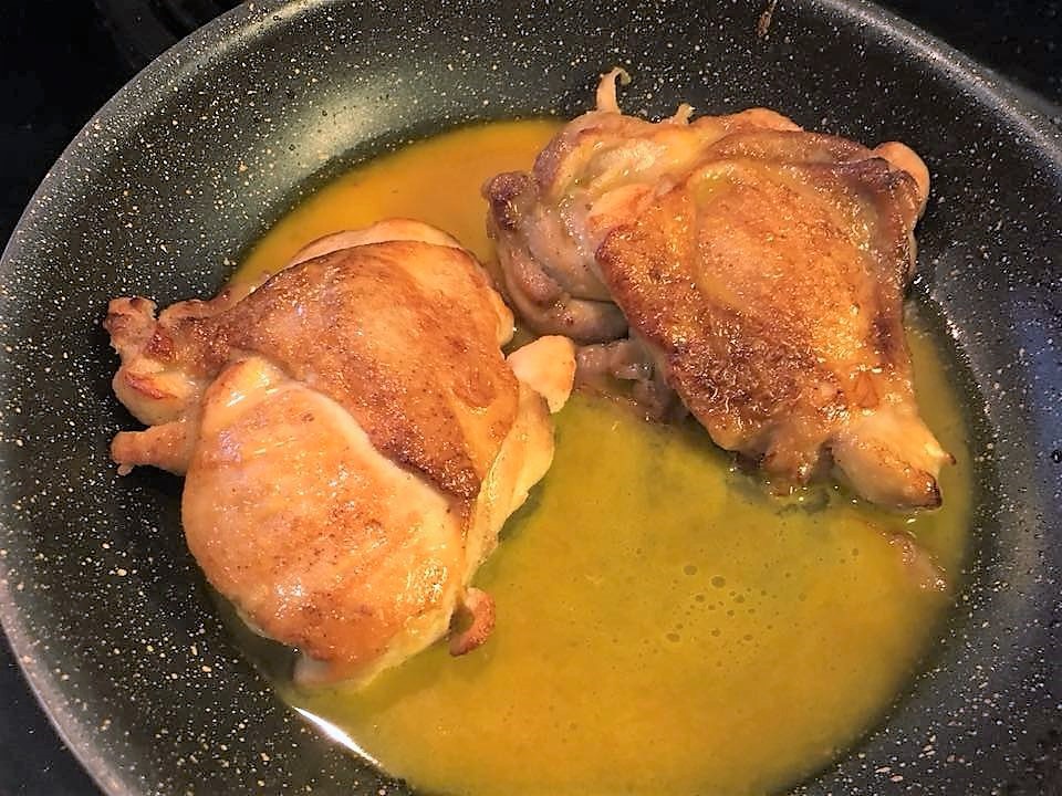 basically just deboned 1/2 chicken, cut into 2 – breast & thigh pieces, seasoned with fish sauce & white pepper & fried skin down to brown the skin for 3-4mins, then turned over added fresh orange juice & honey, covered, cooked chicken while reducing to a thickened sauce. chicken must not be overcooked, so i thickened the sauce further separately.