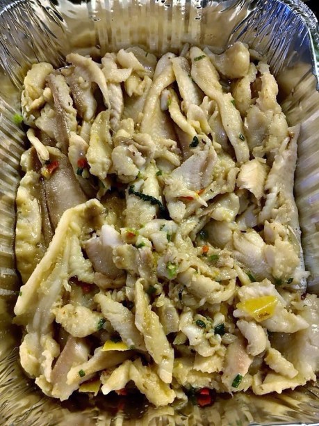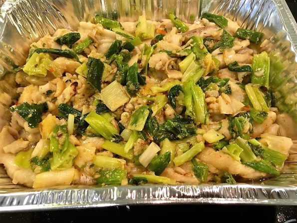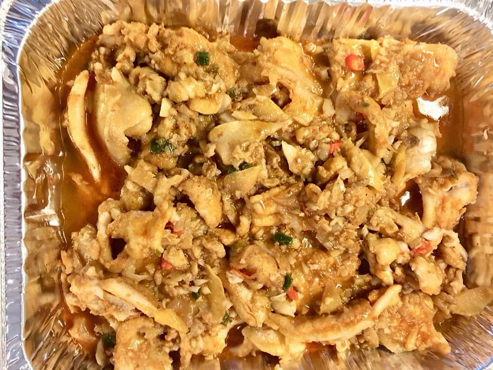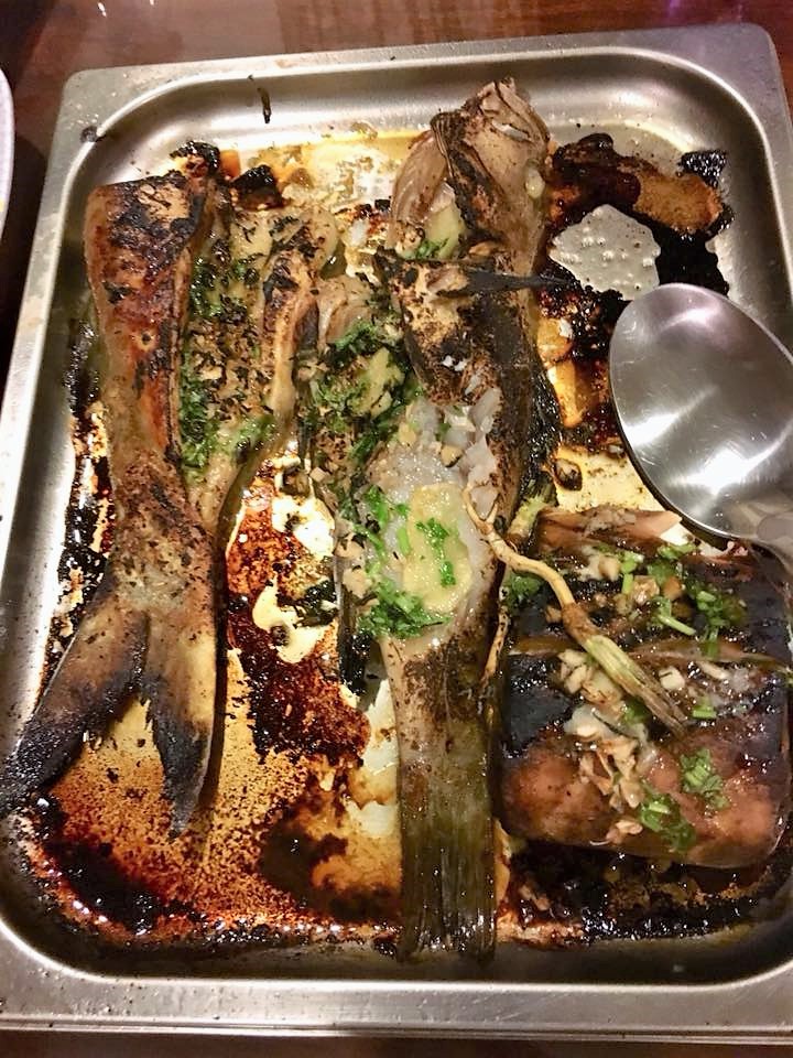 stuffed with sliced ginger, chopped scallions & garlic, a bit of salt and some coriander, oven grilled at 250degC for 9mins with 2-3tbsp light soy sauce & 2 tbsp olive oil. then drizzle 1 tbsp lemon juice.