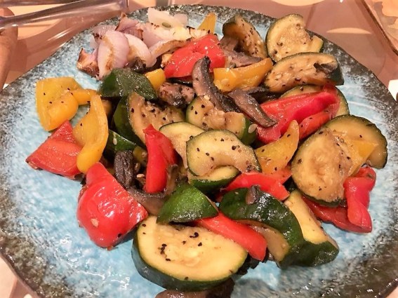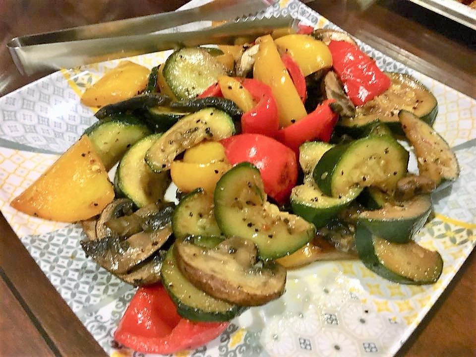 grilled vege-red pepper,yellow pepper,zucchini, portobello mushrooms