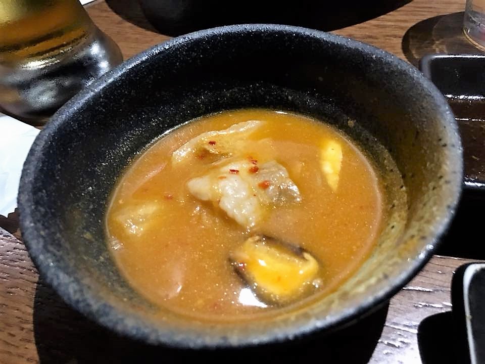 - croatian brodet (Croatian style bouillabaisse) fish stew (treadfin head, whole seabream, prawns, littleneck clams aka la la)