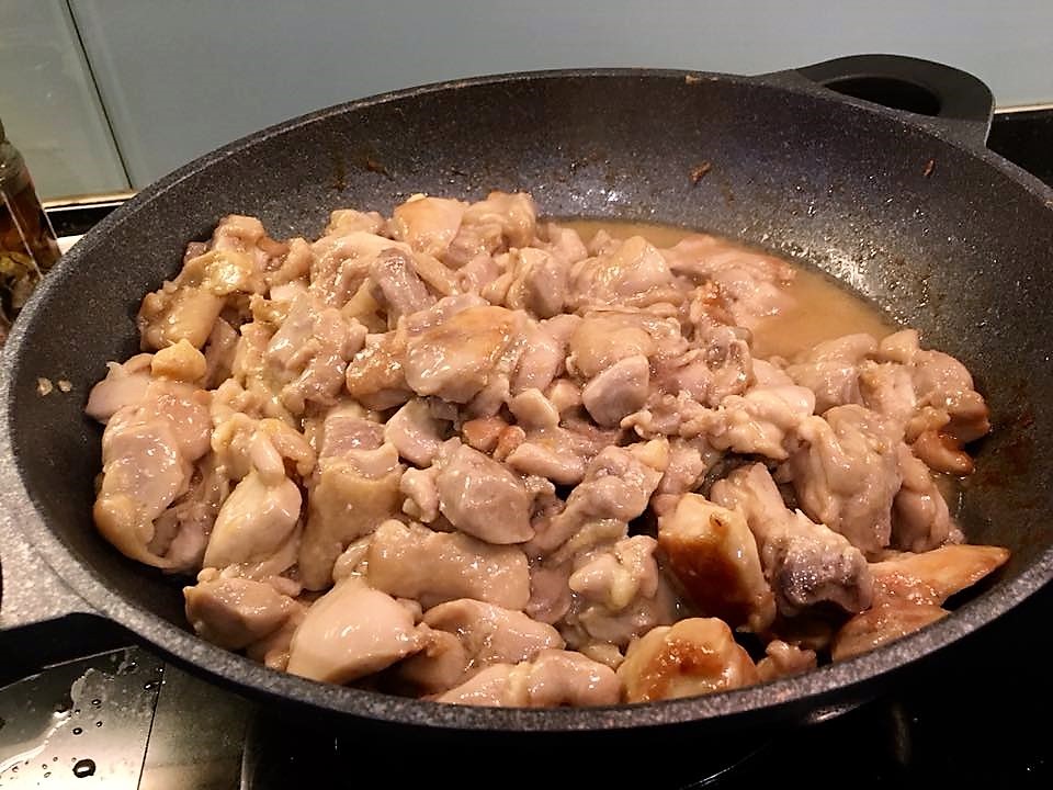 there was a lot of chicken so fried a while to make sure all pieces were cooked evenly, then covered and cooked low fire for 5mins.