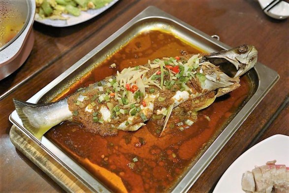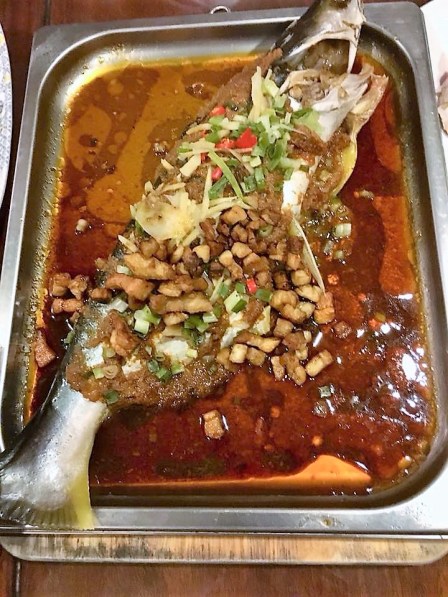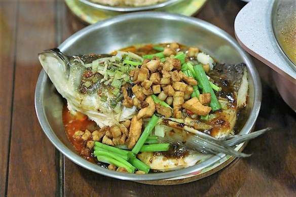 spicy black bean sauce song fish head 松鱼头 the usual nice dish.