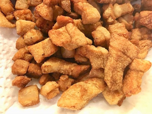 i made some larpok crispy lard. it went well with the 2 steamed fish.