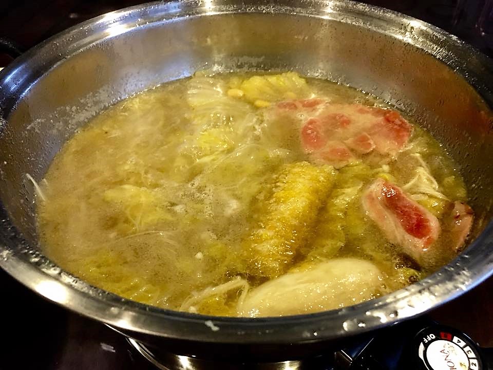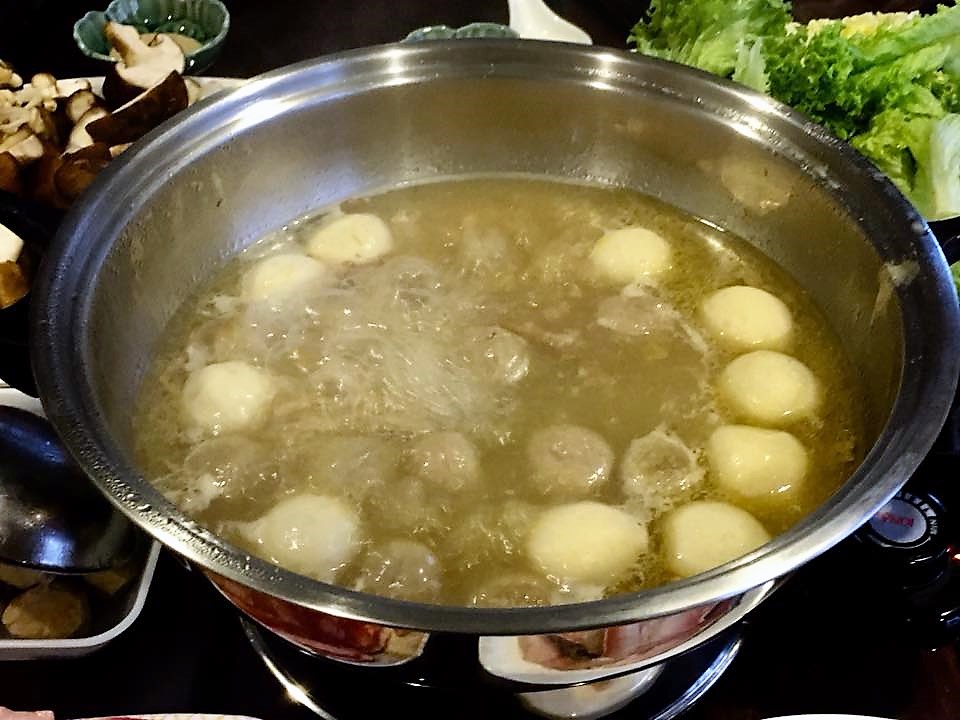 when serving, heat up the stock, added liver (cut cross-grain, washed with salt & drained dry), stir with chopstick for even cooking, cover & serve.