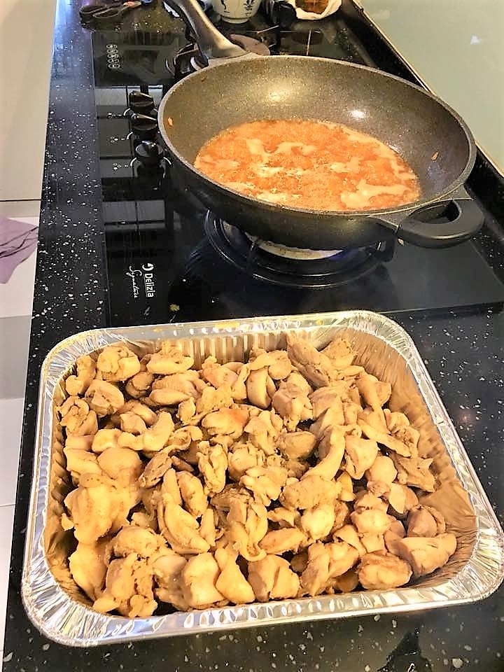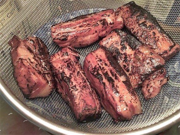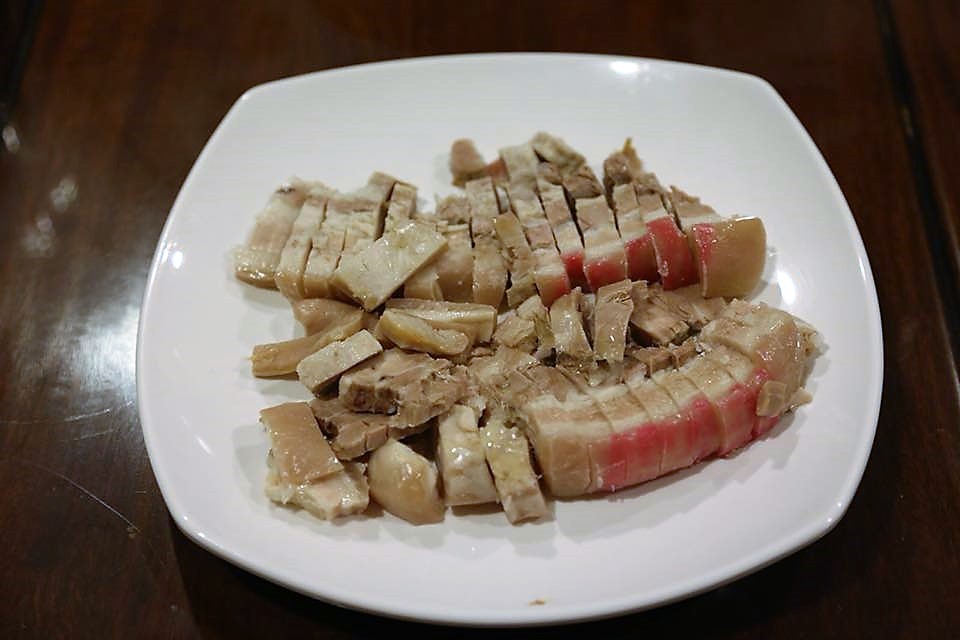 just put the marinade from braised belly pork in a small rectangular dish. cut & added the belly pork (which was slow braised 4hrs in 130degC oven together with the belly pork). placed in fridge & chilled for few hours. 🙂