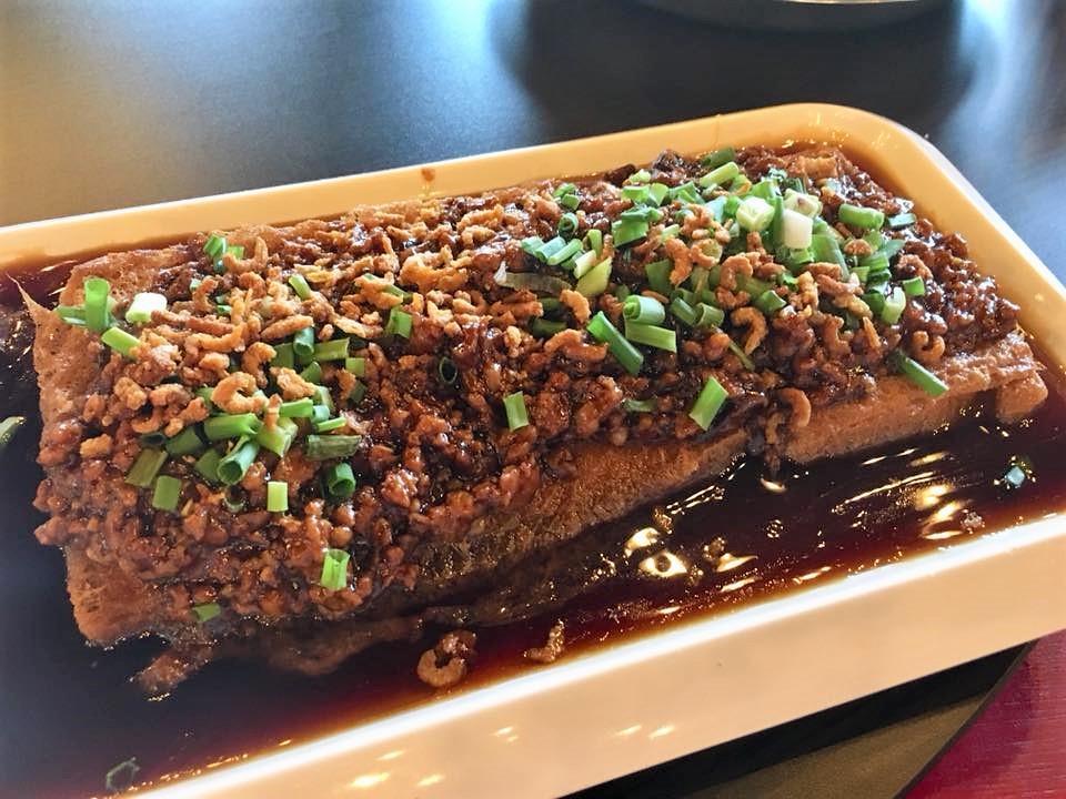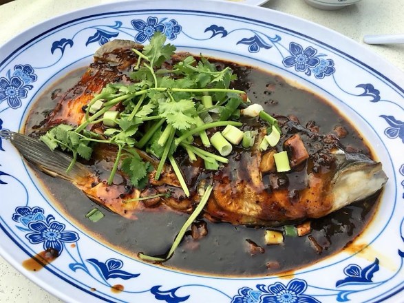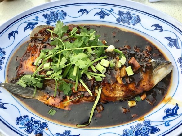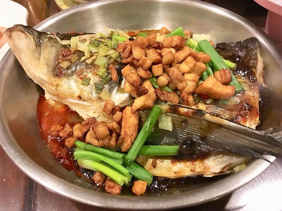 spicy black bean sauce song fish head 松鱼头 the usual nice dish.