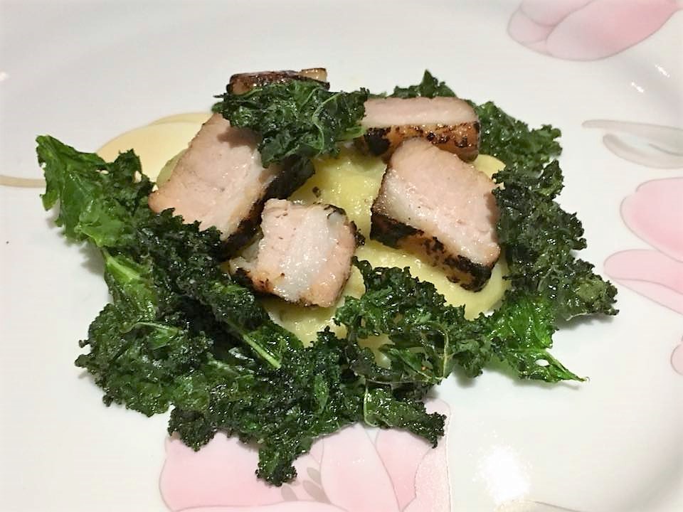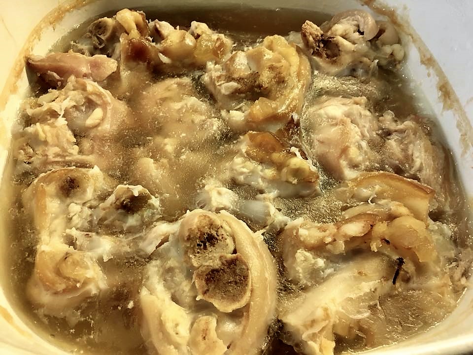 when i slow braise belly pork there is very tasty gelatine. also i had lots of pig skin from previous belly pork dishes where i had to remove the skin. so just 2 and 2!