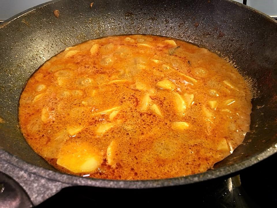 then added lots of fish sauce while still on high fire, feel the wonderful fish sauce aroma. after reduce to medium low. make sure the prawns are cooked.