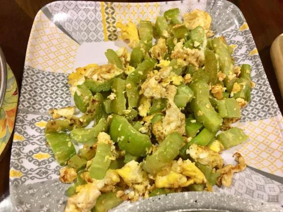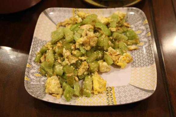 HK commented a few times & later repeated on FB “My favourite: bitter gourd egg omelette. Give me another round I can finish it all by myself!…