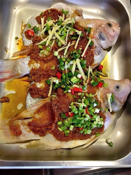 2 spicy black bean sauce steamed song fish head 松鱼头