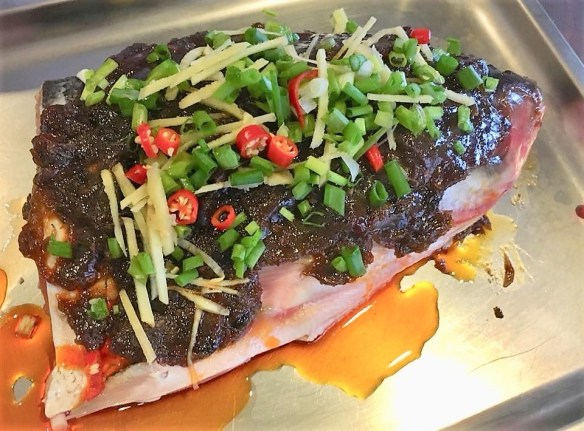 i made the sauce with 1heap tbsp lee kum kee sauce, 1tbsp lemon juice, 1 tbsp flat sugar, 2 tbsp olive oil, 2 tbsp mirin, 1tbsp corn flour to thicken & 1.5tbsp light soy sauce.