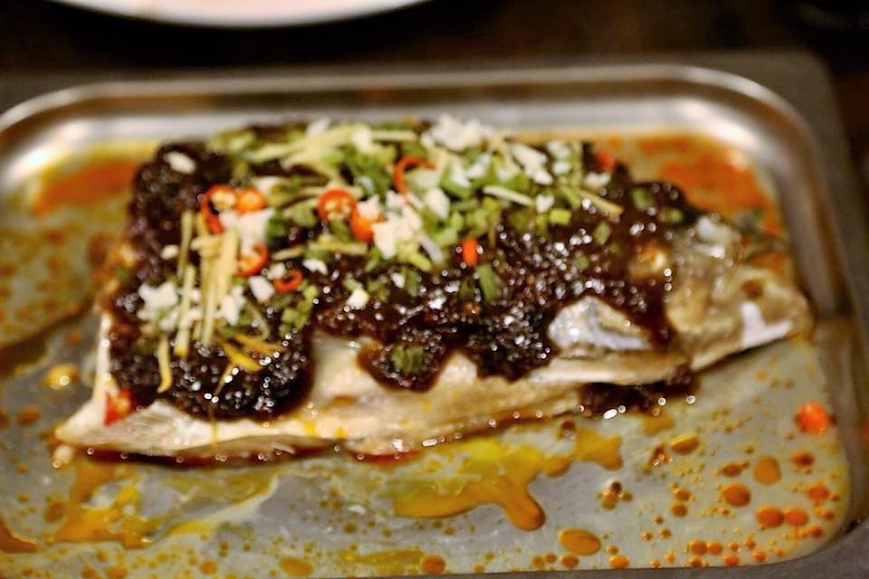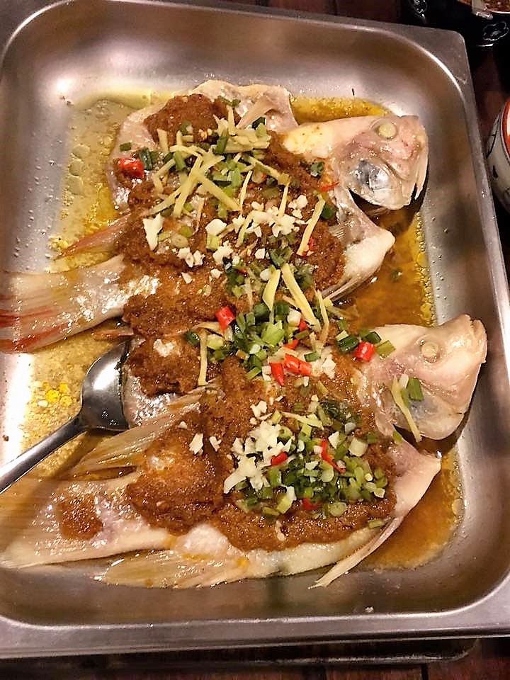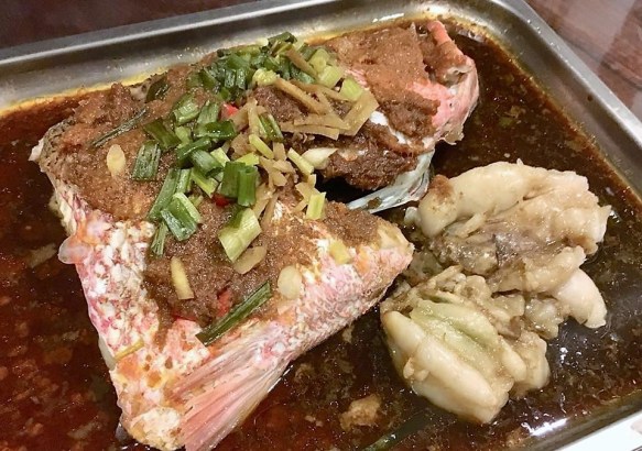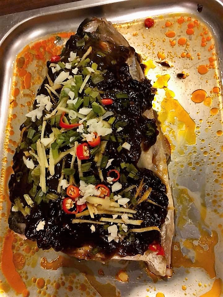 2 spicy black bean sauce steamed song fish head 松鱼头