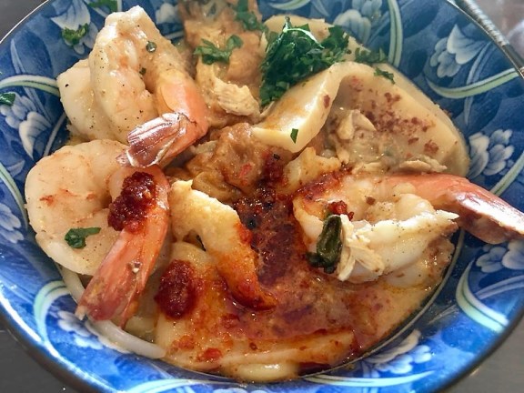the white beehoon this evening was among the favourite dishes, very tasty very well infused, just right texture, lots of larpok (crispy lard) and prawns & squid succulent, done just right.